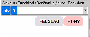 F1-NY knappen ligger till höger om Felslagsknappen, den har samma funktionalitet som Felslag men denna knapp används istället om hela försäljningen ska raderas. Man måste då börja om på nytt med det som ska säljas.