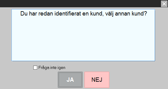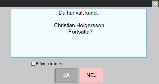 I detta exempel vill vi inte välja en annan kund och svarar "Nej" på frågan.