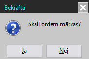 Märkning av ordern är valfritt. Om ingen märkning ska göras går det bra att trycka "Nej" i fönstret. I exemplet märker vi ordern.