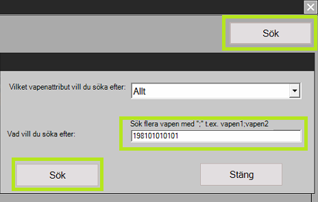 Tryck på knappen [Sök] i det övre högra hörnet av vapenboken och ange därefter personnummer i sökfönstret.