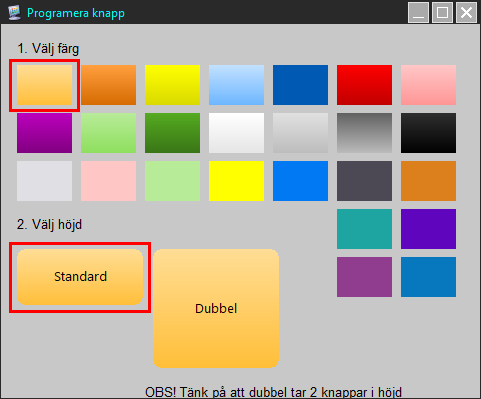 Välj här önskad färg och sen önskad höjd på knappen (Standard eller Dubbel)