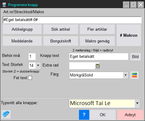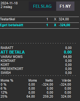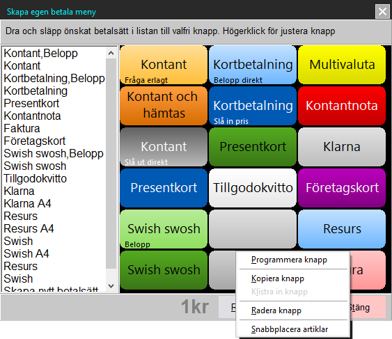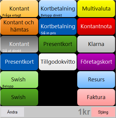 Nu är betalsättet skapat och färdigt för användning i kassan.