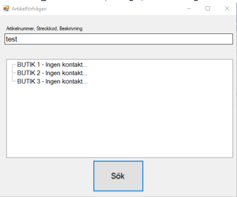 Detta finns idag inbyggt i kassan (VPN eller portforwards i nätverket mellan butikerna är fortfarande nödvändigt) men det finns ett fåtal kunder som fortfarande kör med den separata mjukvaran för Artikelförfrågan då det förr låg utanför kassaprogrammet.