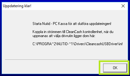 Slutför genom att tryck OK i fönstret "Uppdatering klar!".