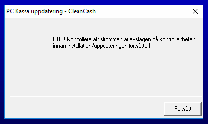 Stäng ner PC-Kassa och kör pckassaupp32.exe (kontrollboxversion av uppdateringsfilen)