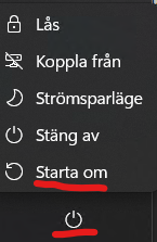 - Starta om datorn via omstartsfunktionen i Windows startmeny.