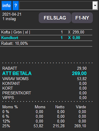 Genomför inslagen som vanligt och identifiera förening / kund till kvittot för att eventuella automatiskt kopplade rabatter infogas.