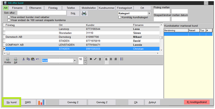 Tryck därefter på knappen [Ny kund] längre ner i bilden.