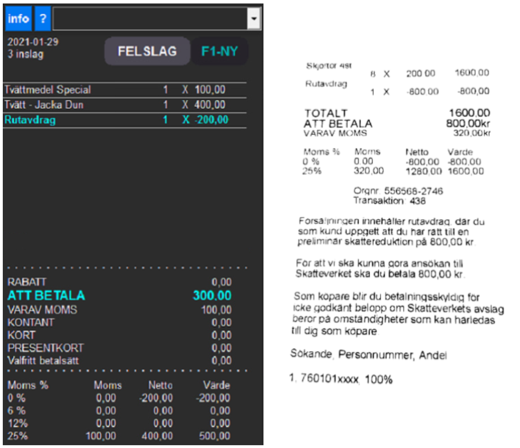 Att komma i gång med RUT- eller ROT-avdrag i PC-kassa är både snabbt och enkelt. En försäljning med skattereduktion tar enbart ett par sekunder extra och i efterhand går det enkelt att följa upp samt ta ut tydliga underlag för administration.