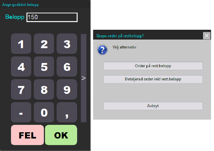 Ange status samt hantera Restbelopp