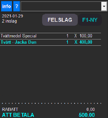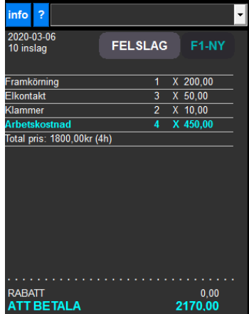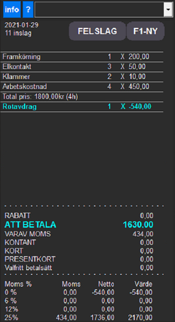 Börja med att göra inslag som vanligt i kvittofönstret och tryck på den nya knappen för RUT-Avdrag.
