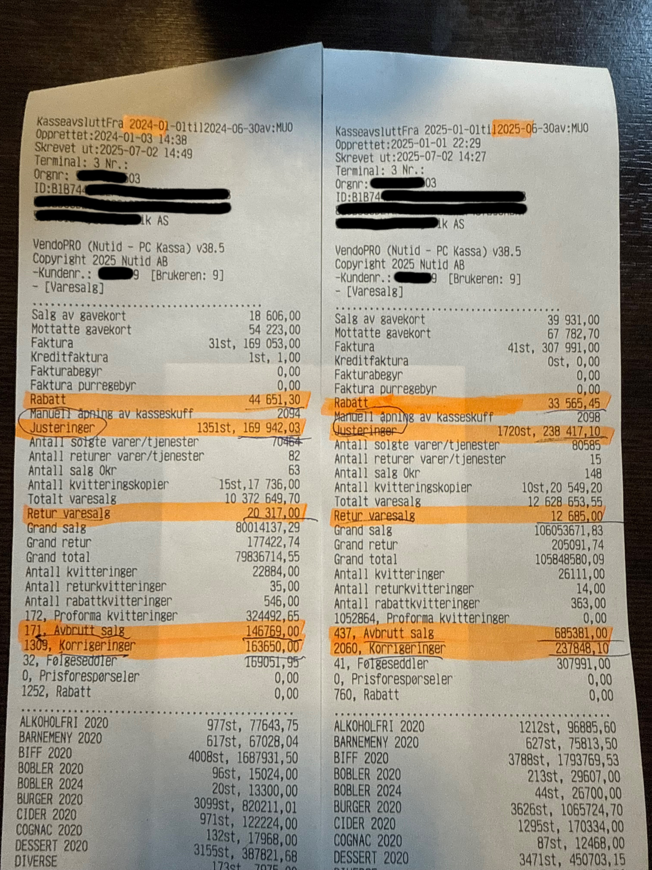 Kommer man på att man missat i räkningen går det att trycka på [Räkna kassa] igen och justera. Detta fungerar tills man avslutat dagen, se nedan.
