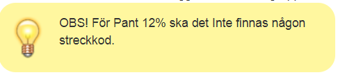 Används för pant via pantmaskin som genererar en streckkod. Tanken är att man bara ska behöva scanna streckkoden från pantkvittot i kassan så ska pantavdraget läggas in automatiskt på kvittot. Pant är momsbelagt. Det finns två olika momssatser som används: